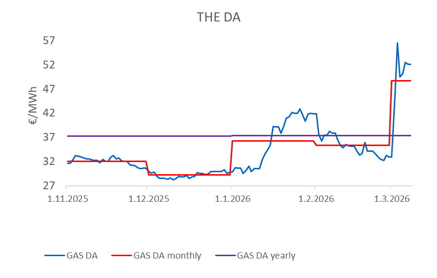 Súbežne sa vyvíjal trh so zemným plynom, ktorý pri aktuálnych cenách emisií zostal kľúčovým cenotvorným faktorom. V prvej polovici februára ceny plynu kolísali v závislosti od predpovedí počasia a stavu zásob.Zásobníky v EÚ postupne klesli pod 35 % naplnenosti, pričom Nemecko sa pohybovalo ešte výrazne nižšie. Miernejšie teploty dočasne zmiernili tlak na ceny, no nízka úroveň zásob udržiavala trh citlivý na akékoľvek narušenie dodávok.
