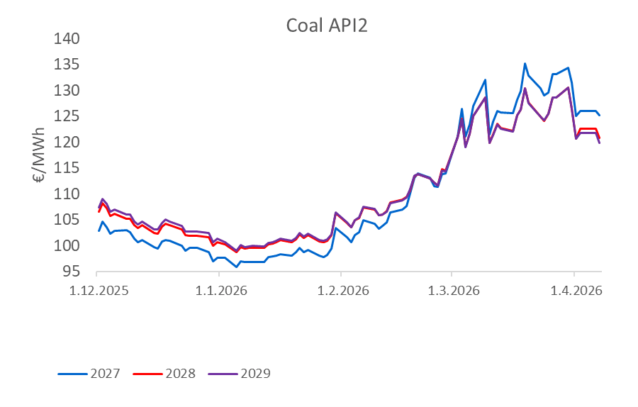 Rast cien plynu, ktorý bol spôsobený konfliktom na Blízkom východe a výpadkami LNG, viedol k prechodu časti výroby elektriny z plynu na uhlie. Tento „fuel switching“ efekt zvýšil dopyt po emisných povolenkách a poskytol trhu fundamentálnu podporu. Súčasne sa tento efekt postupne prenášal aj do dlhodobejších kontraktov, čo posilňovalo strednodobý rastový trend EUA.